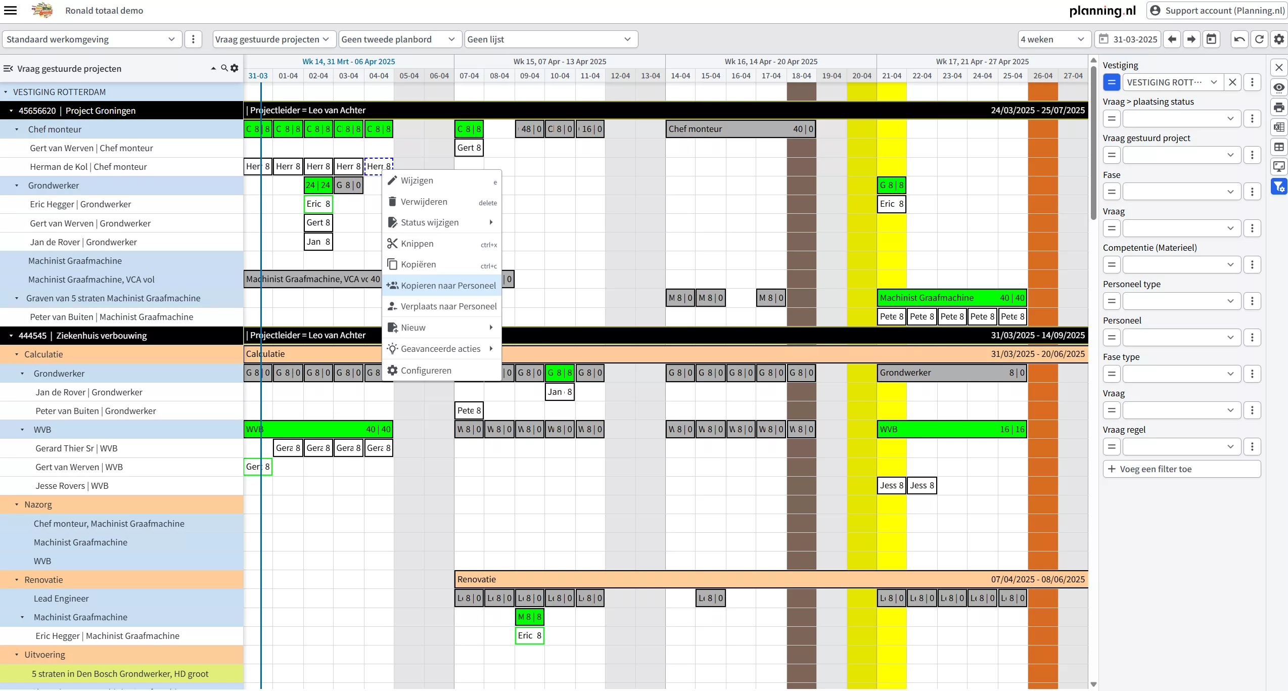 Planning.nl biedt een complete planningstool, waarin het mogelijk is om projectplanning en resourceplanning te combineren op één planbord. Wij ontwikkelen onze software zelf, en deze draait op eigen hardware vanuit data centers in Nederland.