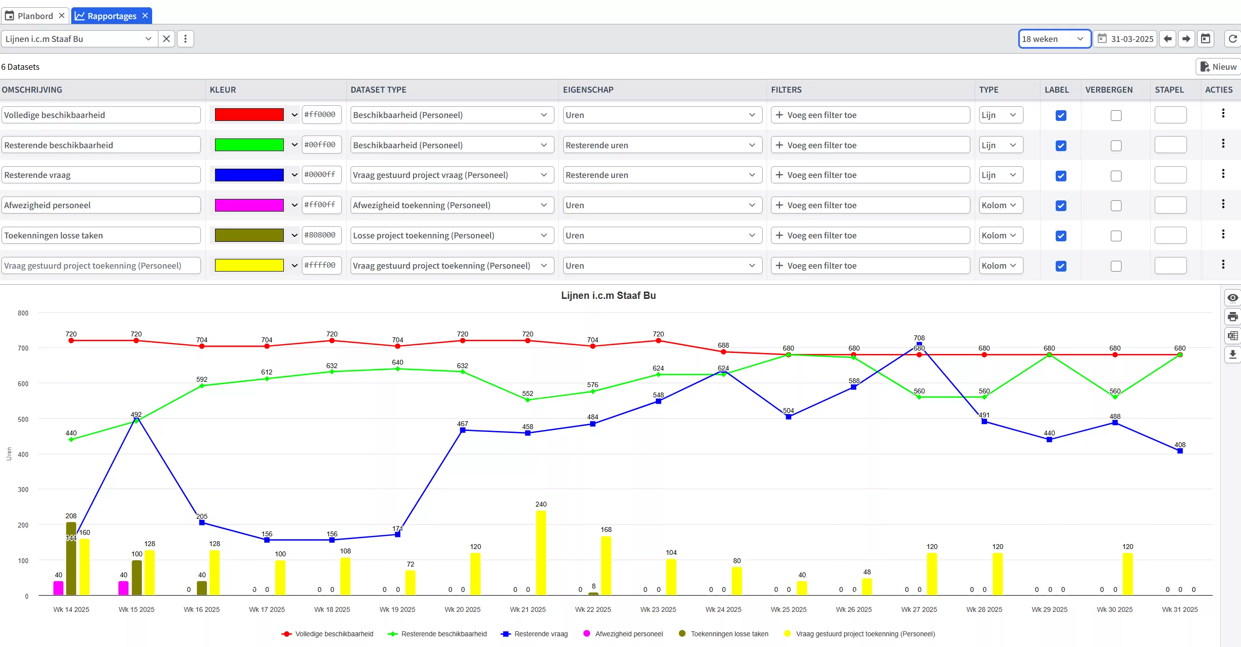 ziet u direct wat het effect van een wijziging is binnen andere onderdelen van het planbord.